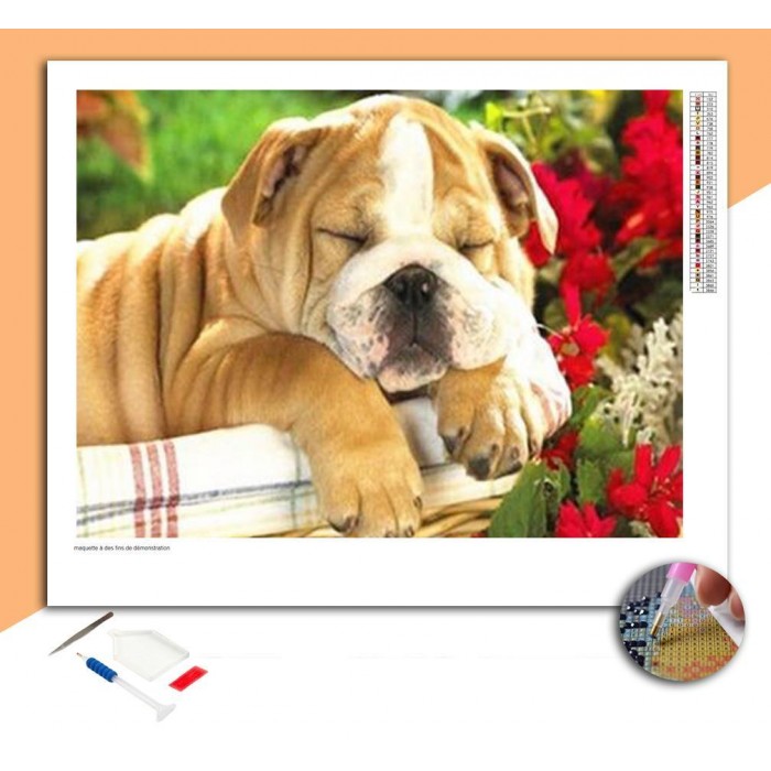 Enjolivez votre intérieur avec cette broderie diamant originale. Avant de pouvoir l'accrocher, vous devez d'abord la réaliser. C'est une activité que vous pouvez faire seul(e) ou accompagné(e), elle doit être un moment de détente. Le bulldog qui dort renverra une image de fiabilité et de douceur à votre pièce.