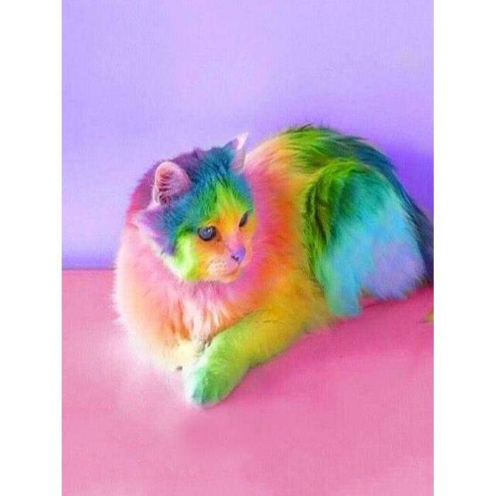 Révélez l'artiste qui est en vous en confectionnant cette broderie diamant. Lorsque vous l'aurez terminé, l'image que vous verrez représentera un joli chat multicolore sur un fond rose pastel.