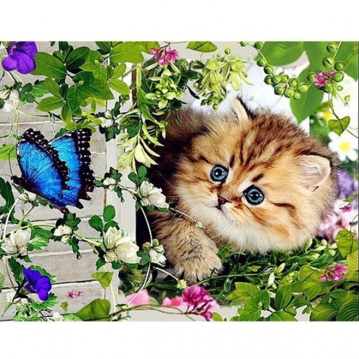 Kit de Broderie Diamant Chaton, Papillon & Nature