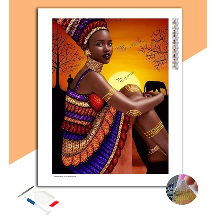 Envie de créer ? Confectionnez cette broderie diamant à la découverte de l'Afrique. Les couleurs vives ressortent parfaitement grâce à ce merveilleux coucher de soleil. Lors de l'aboutissement de cette broderie, vous obtiendrez forcément une broderie qui saura faire briller votre pièce.