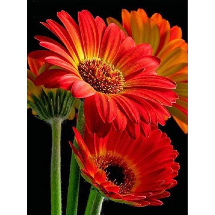 Le gerbera par sa forme solaire et ses couleurs évoque le bonheur et la joie de vivre. Il a une présence festive et met tout le monde de bonne humeur. Alors si vous souhaitez une nouvelle décoration vous procurant du bonheur, n'hésitez pas à acheter cette magnifique broderie diamant.
