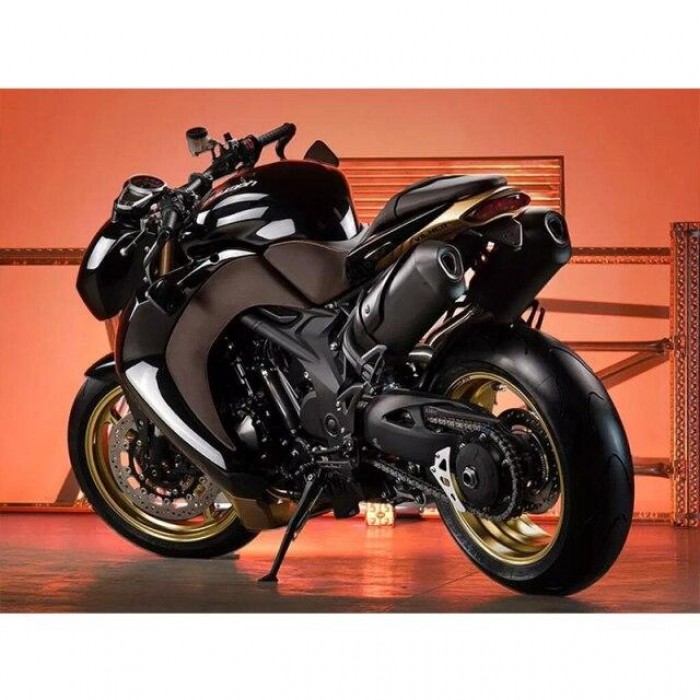 De son allure imposante, de sa couleur noire et de ses roues dorées, la grosse moto force le respect dû à son rang. Inutile de vous dire que si vous êtes un passionné des motos, vous constaterez que tout le kit de broderie diamant vous fera penser au moindre détail du design. Du grand art que vous exposerez fièrement sur votre mur intérieur.