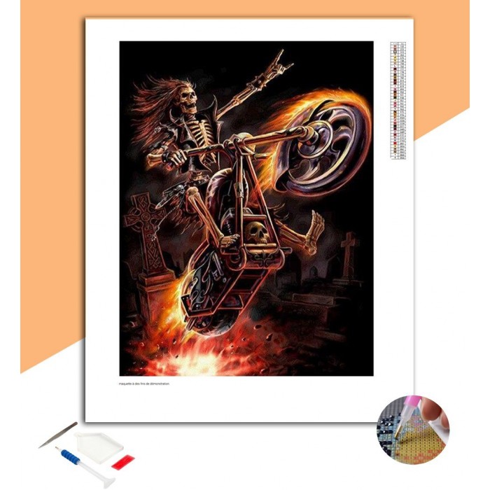 Tel le ghost rider, le corps squelettique de ce routard s’embrase aussi instantanément que sa moto tête-de-mort. Avec son pouvoir de flamme, il a l’intention de partir en cavale. Métamorphosez votre univers avec cette broderie diamant. Elle se veut être avant tout une activité de loisirs.