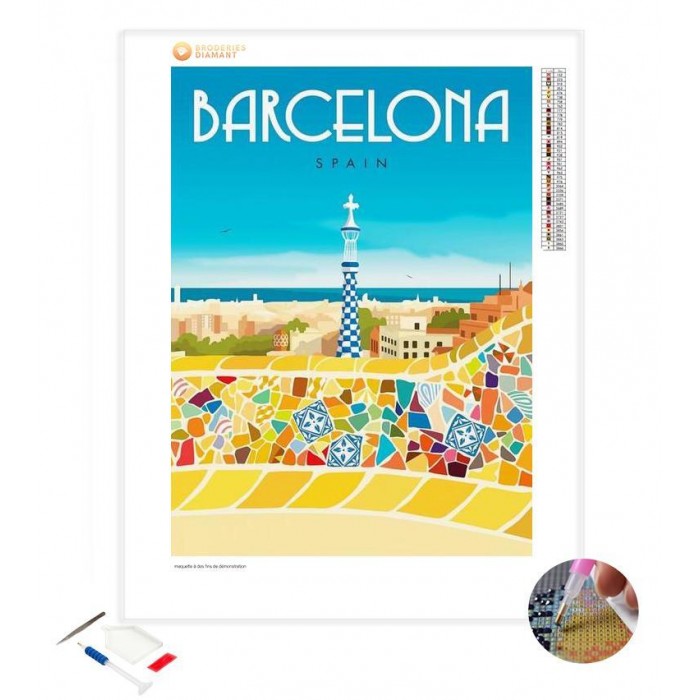 Si vous aimez la création, les activités manuelles, décorer votre lieu de vie avec vos propres oeuvres, la broderie diamant est une parfaite activité. Celle-ci représente la ville de Barcelone en Espagne. On peut apercevoir le très célèbre parc Güell qui est coloré et apporte de la lumière à l'oeuvre.